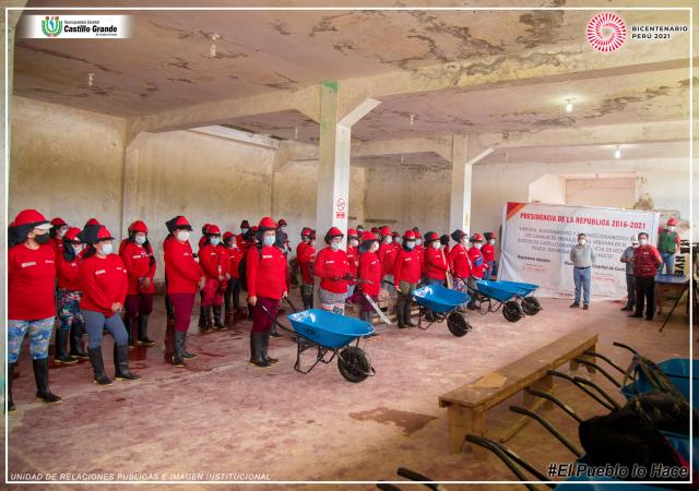 Con el objetivo de reactivar la economía y generando empleo para la población Castillense, el Alcalde Pabel Espinoza Trujillo en una ceremonia significativa, acompañado del Gerente de Infraestructura, Jefe de Obras y Subprefecto Distrital, dio inicio a la primera actividad de intervención inmediata con el programa Trabaja Perú “Limpieza y acondicionamiento de canales y vias urbanas en el Distrito de Castillo Grande ”
